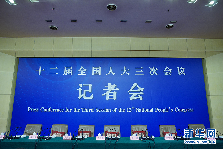 ????3月13日上午10時,十二屆全國人大三次會議新聞中心邀請四川大學校長謝和平、江蘇省教育廳廳長沈健、廣東省教育廳廳長羅偉其、海南大學校長李建保、貴州大學校長鄭強就完善高等教育治理結構的相關問題回答中外記者提問。圖為記者會現場。新華網/中國政府網 郭小天 攝