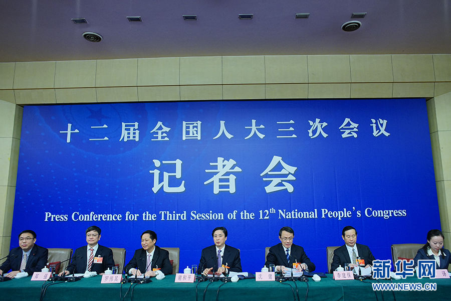 ????3月13日上午10時(shí),十二屆全國(guó)人大三次會(huì)議新聞中心邀請(qǐng)四川大學(xué)校長(zhǎng)謝和平、江蘇省教育廳廳長(zhǎng)沈健、廣東省教育廳廳長(zhǎng)羅偉其、海南大學(xué)校長(zhǎng)李建保、貴州大學(xué)校長(zhǎng)鄭強(qiáng)就完善高等教育治理結(jié)構(gòu)的相關(guān)問(wèn)題回答中外記者提問(wèn)。圖為出席記者會(huì)的嘉賓。新華網(wǎng)/中國(guó)政府網(wǎng) 郭小天 攝