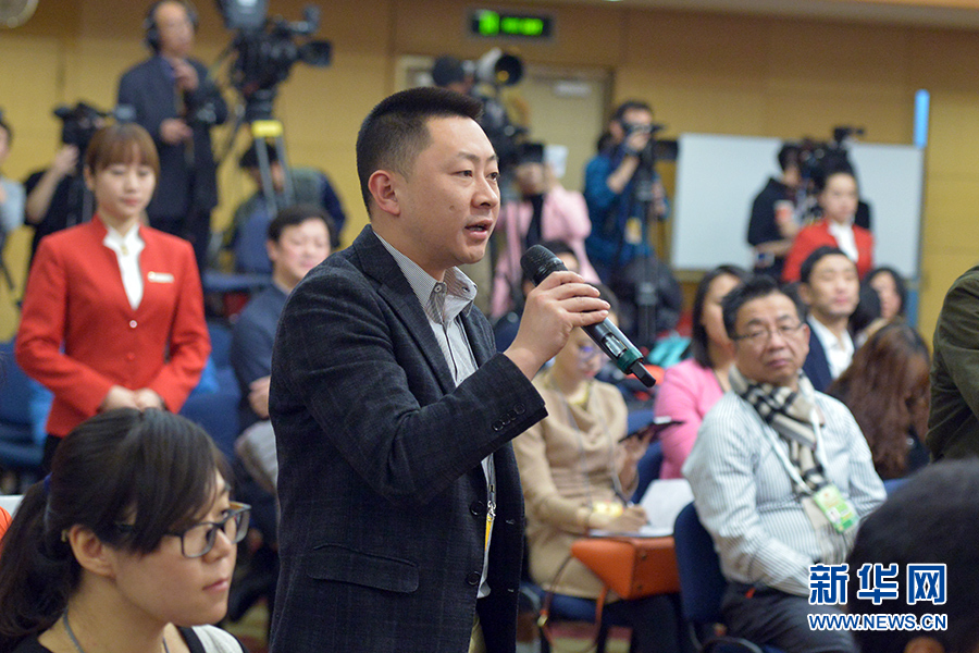 ????3月13日上午10時(shí),十二屆全國人大三次會(huì)議新聞中心邀請四川大學(xué)校長謝和平、江蘇省教育廳廳長沈健、廣東省教育廳廳長羅偉其、海南大學(xué)校長李建保、貴州大學(xué)校長鄭強(qiáng)就完善高等教育治理結(jié)構(gòu)的相關(guān)問題回答中外記者提問。圖為四川電視臺記者提問。新華網(wǎng)/中國政府網(wǎng) 郭小天 攝