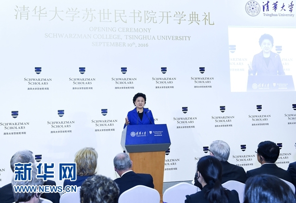 新華社北京9月10日電? 清華大學(xué)蘇世民書院開學(xué)典禮10日在京舉行,國(guó)務(wù)院副總理劉延?xùn)|出席典禮并致辭。她強(qiáng)調(diào),蘇世民書院作為中美人文交流和教育合作的結(jié)晶,要按照習(xí)近平主席向蘇世民書院開學(xué)典禮所致賀信的要求,立足中國(guó)、面向世界,努力培育視野開闊、能力卓越、富有責(zé)任感和領(lǐng)導(dǎo)力潛質(zhì)的各國(guó)杰出青年人才,為構(gòu)建人類命運(yùn)共同體、增進(jìn)世界各國(guó)人民福祉貢獻(xiàn)力量。