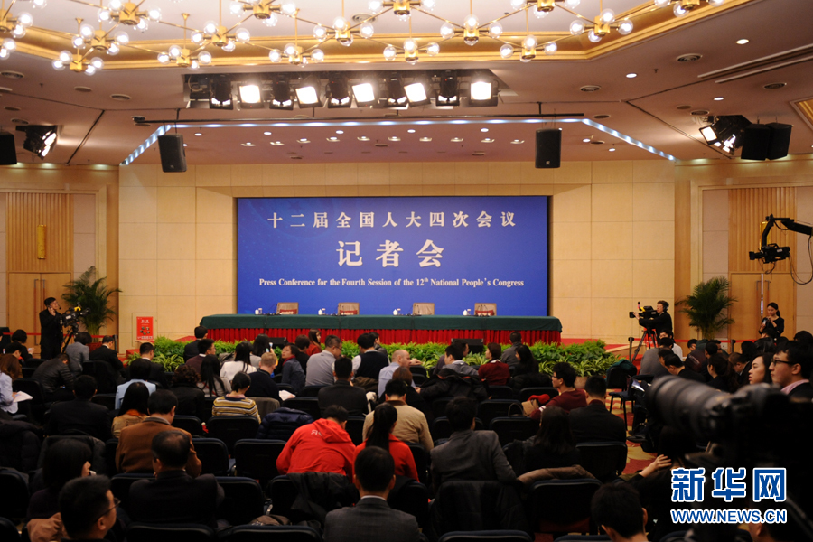 十二屆全國人大四次會議新聞中心于3月8日(星期二)10時在梅地亞中心多功能廳舉行記者會,邀請外交部部長王毅就“中國的外交政策和對外關系”的相關問題回答中外記者的提問。圖為發布會現場。新華網發 陳競超攝