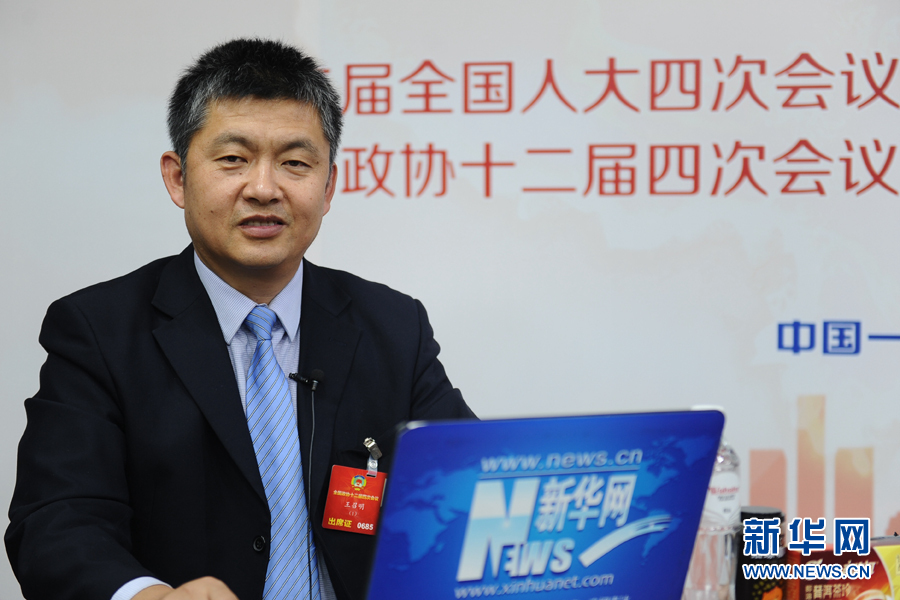 董事長兼總經理王召明做客新華網兩會訪談。圖為王召明在訪談現場。新華網 賈海元 攝