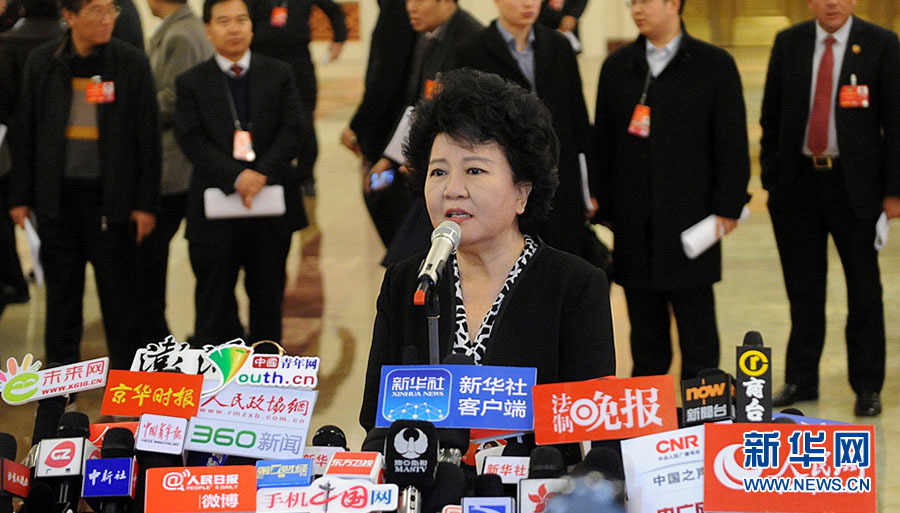 3月13日上午9時,第十二屆全國人民代表大會第四次會議將在人民大會堂舉行第三次全體會議,聽取最高人民法院院長周強關于最高人民法院工作的報告,聽取最高人民檢察院檢察長曹建明關于最高人民檢察院工作的報告。圖為國務院僑務辦公室主任裘援平在部長通道接受采訪。新華網/中國政府網 陳競超 攝