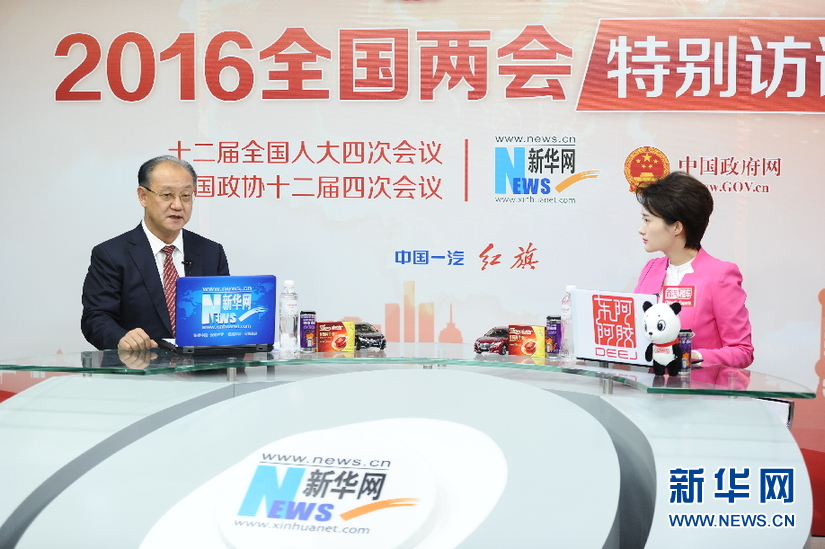 2016年3月13日,全國(guó)政協(xié)委員,中國(guó)中醫(yī)科學(xué)院廣安門(mén)醫(yī)院院長(zhǎng)王階做客新華網(wǎng)兩會(huì)訪(fǎng)談直播間。圖為王階在訪(fǎng)談現(xiàn)場(chǎng)。新華網(wǎng) 盧志佳 攝