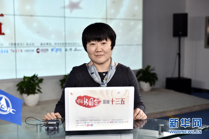 2016年3月13日,全國政協委員,中國航天科工集團公司副總經理魏毅寅做客新華網兩會訪談直播間。圖為主持人朱研。新華網 付宇鵬 攝