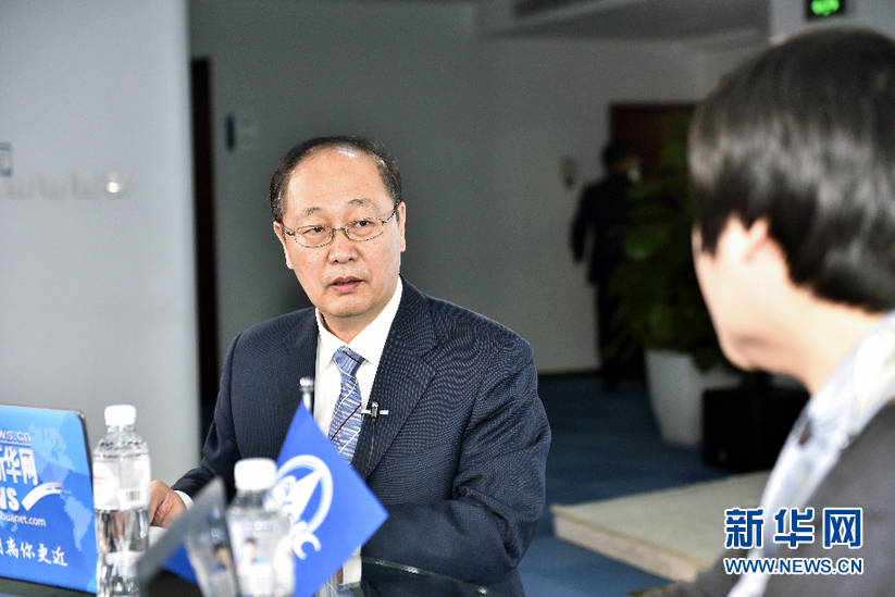 2016年3月13日,全國政協委員,中國航天科工集團公司副總經理魏毅寅做客新華網兩會訪談直播間。圖為魏毅寅在回答主持人的提問。新華網 付宇鵬 攝
