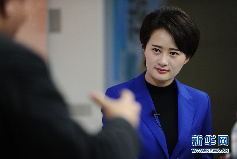 2016年3月14日,全國政協委員,天津達仁堂京萬紅藥業有限公司總經理劉文偉做客新華網2016全國兩會特別訪談。圖為劉文偉與主持人進行交流。新華網 賈海元 攝