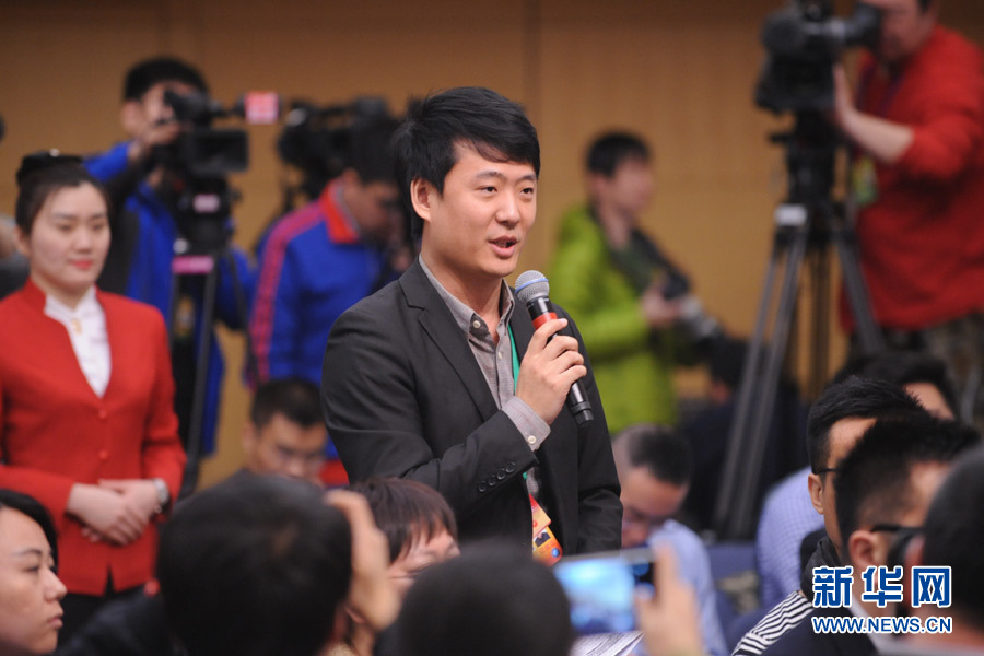十二屆全國人大四次會議新聞中心于3月14日(星期一)10時在梅地亞中心多功能廳舉行記者會,邀請交通運輸部部長楊傳堂、交通運輸部運輸服務司司長劉小明、北京交通發展研究中心主任郭繼孚就“深化出租汽車改革與發展”的相關問題回答中外記者的提問。圖為新華社記者提問。新華網/中國政府網 陳杰 攝