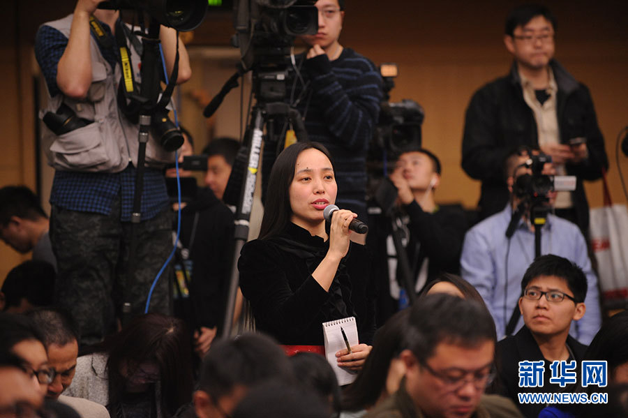 十二屆全國人大四次會議新聞中心于3月15日(星期二)10時在梅地亞中心多功能廳舉行記者會,邀請住房和城鄉建設部部長陳政高、副部長陸克華、副部長倪虹就“棚戶區改造和房地產工作”的相關問題回答中外記者的提問。圖為中國日報記者提問。新華網/中國政府網 陳杰 攝