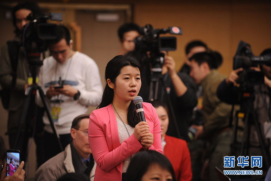 十二屆全國人大四次會議新聞中心于3月15日(星期二)10時在梅地亞中心多功能廳舉行記者會,邀請住房和城鄉建設部部長陳政高、副部長陸克華、副部長倪虹就“棚戶區改造和房地產工作”的相關問題回答中外記者的提問。圖為中國網記者提問。新華網/中國政府網 陳杰 攝