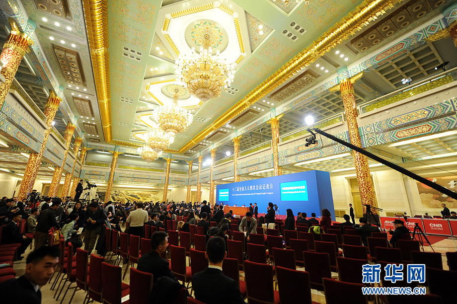 3月16日上午,國務(wù)院總理李克強(qiáng)在人民大會(huì)堂三樓金色大廳會(huì)見采訪十二屆全國人大四次會(huì)議的中外記者并回答記者提出的問題。圖為記者會(huì)現(xiàn)場(chǎng)。距記者會(huì)開始還有一段時(shí)間,現(xiàn)場(chǎng)已經(jīng)人頭攢動(dòng)。新華網(wǎng)/中國政府網(wǎng) 陳競(jìng)超 攝