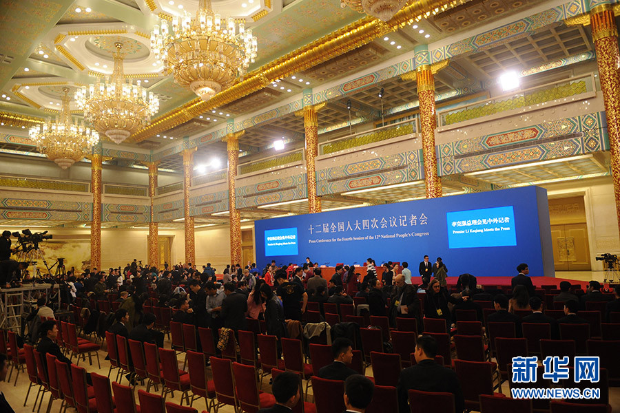3月16日上午,國(guó)務(wù)院總理李克強(qiáng)在人民大會(huì)堂三樓金色大廳會(huì)見(jiàn)采訪十二屆全國(guó)人大四次會(huì)議的中外記者并回答記者提出的問(wèn)題。圖為記者在準(zhǔn)備工作。新華網(wǎng)/中國(guó)政府網(wǎng) 陳杰攝