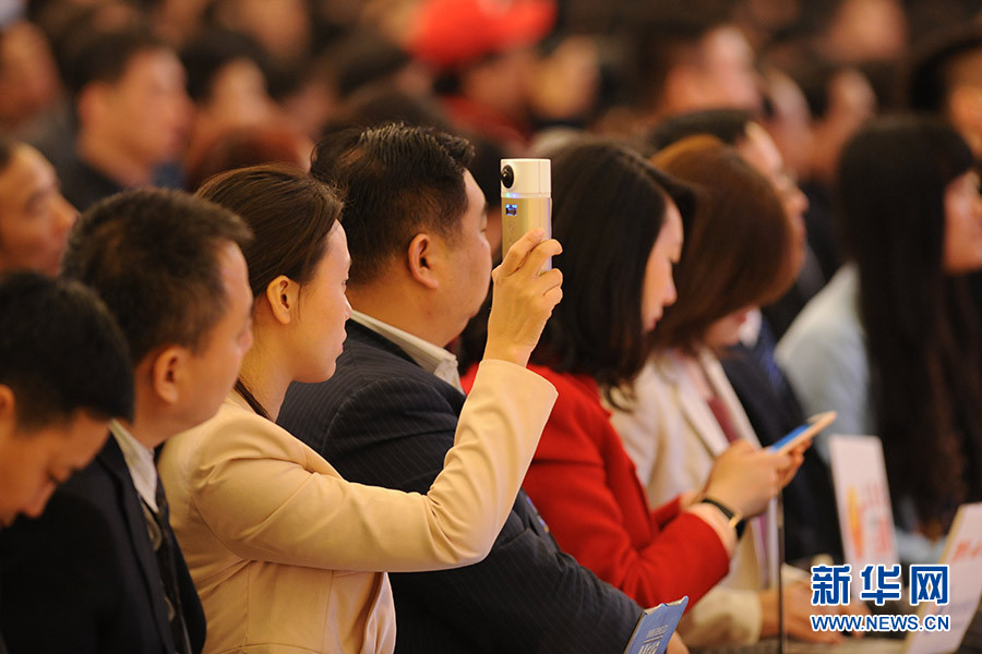 3月16日上午,國務院總理李克強在人民大會堂三樓金色大廳會見采訪十二屆全國人大四次會議的中外記者并回答記者提出的問題。圖為新華網VR報道總理記者會。新華網/中國政府網 陳杰攝