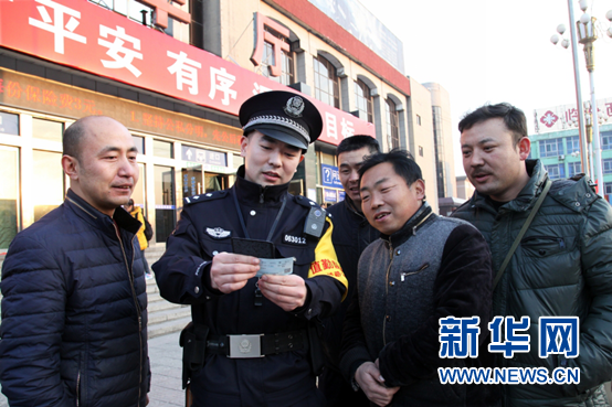 2月12日,侯馬站派出所民警為進出站旅客提供幫助。 新華網 田明 攝