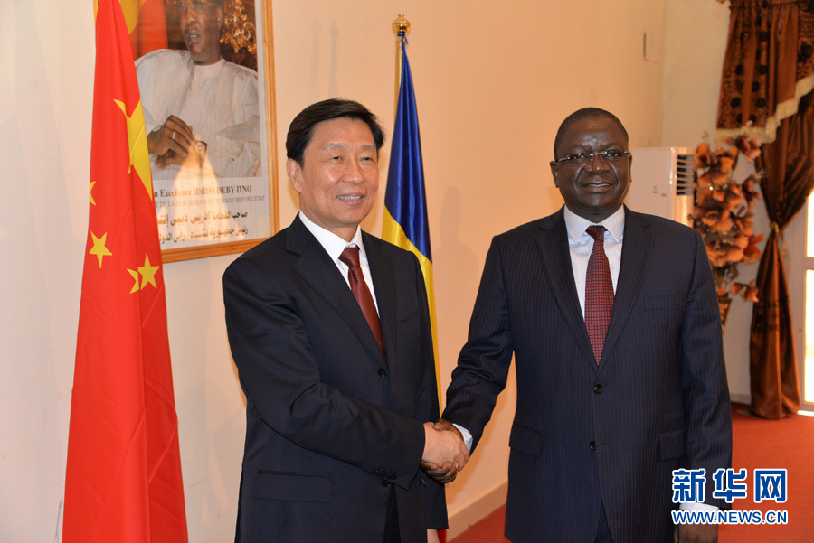 ??? 5月9日,乍得總理帕達克(右)在恩賈梅納會見到訪的中國國家副主席李源潮。新華社記者喬本孝攝