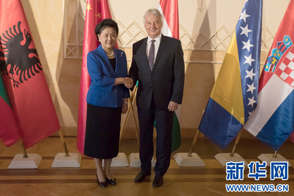 6月19日,在匈牙利布達佩斯,中國國務院副總理劉延東(左)會見匈牙利副總理謝姆延。 新華社發(弗爾季·奧蒂洛攝)