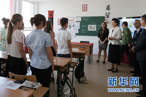 新華社布達佩斯6月19日電 6月19日,國務院副總理劉延東在布達佩斯考察匈中雙語學校。匈中雙語學校成立于2004年,是匈牙利乃至中東歐地區唯一一所同時采用所在國語言和漢語作為教學語言的十二年制公立學校。