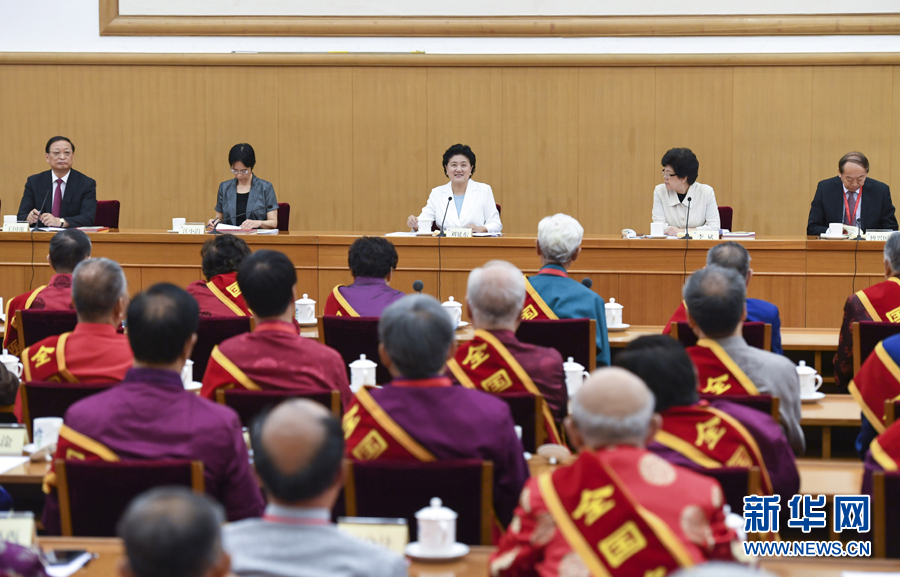 6月29日,中共中央政治局委員、國務院副總理劉延東在北京接見第三屆國醫大師和首屆全國名中醫代表并座談。 新華社記者 張領 攝