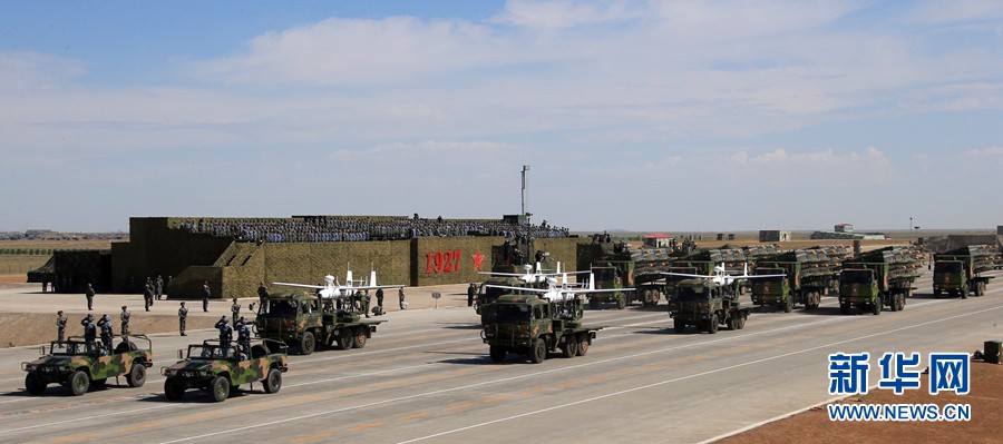 新華社內蒙古朱日和7月30日電(記者王經國、樊永強)由40架三型無人機組成的無人機方隊,以空軍和陸軍混編模式,30日在慶祝中國人民解放軍建軍90周年閱兵中首次亮相。