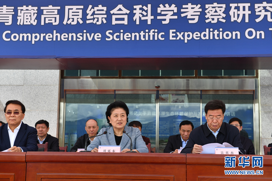 8月19日,第二次青藏高原綜合科學考察研究在拉薩啟動。中共中央總書記、國家主席、中央軍委主席習近平發(fā)來賀信,向參加科學考察的全體科研人員、青年學生和保障人員表示熱烈的祝賀和誠摯的問候。中共中央政治局委員、國務院副總理劉延東在啟動儀式上宣讀習近平的賀信,宣布第二次青藏高原綜合科學考察研究啟動。新華社記者 張汝鋒 攝