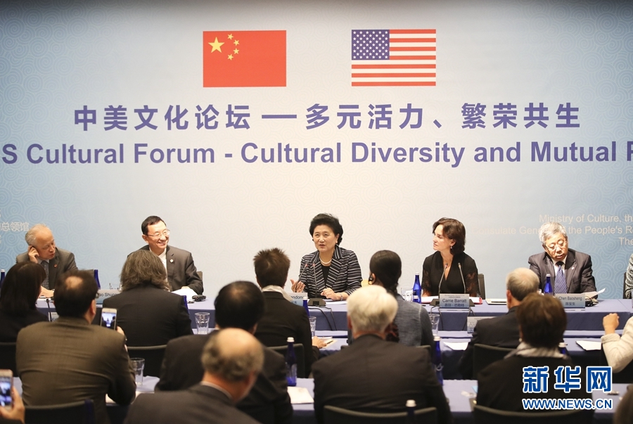 9月26日,在美國紐約大都會藝術(shù)博物館,國務(wù)院副總理劉延?xùn)|(中)出席中美文化論壇。當(dāng)?shù)貢r間9月26日,國務(wù)院副總理劉延?xùn)|在紐約大都會藝術(shù)博物館出席中美文化論壇并致辭。新華社記者 王迎 攝
