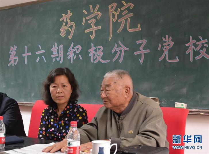 馮翠玲(左)和天津大學的老教授印邦炎為學生講黨課(2016年10月15日攝)。新華社發