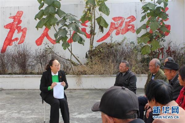十九大代表、山東省棗莊市山亭區鳧城鎮千佛崖村黨支部書記李晨(左一)在村委會宣講十九大精神(10月26日攝)。新華社發(宋偉攝)