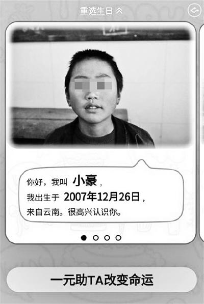 然而,很快有網友“曬”出了這個活動的疑點:在5月5日出生的受助人顯示為“阿豪,出生于2007年”,同一張照片也在12月26日的受助人一欄中出現,姓名變成了“小豪”。