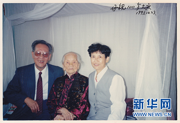 黃旭華(左一)在母親一百歲大壽時合影(資料照片,1993年10月23日攝)。新華社記者 熊琦 攝
