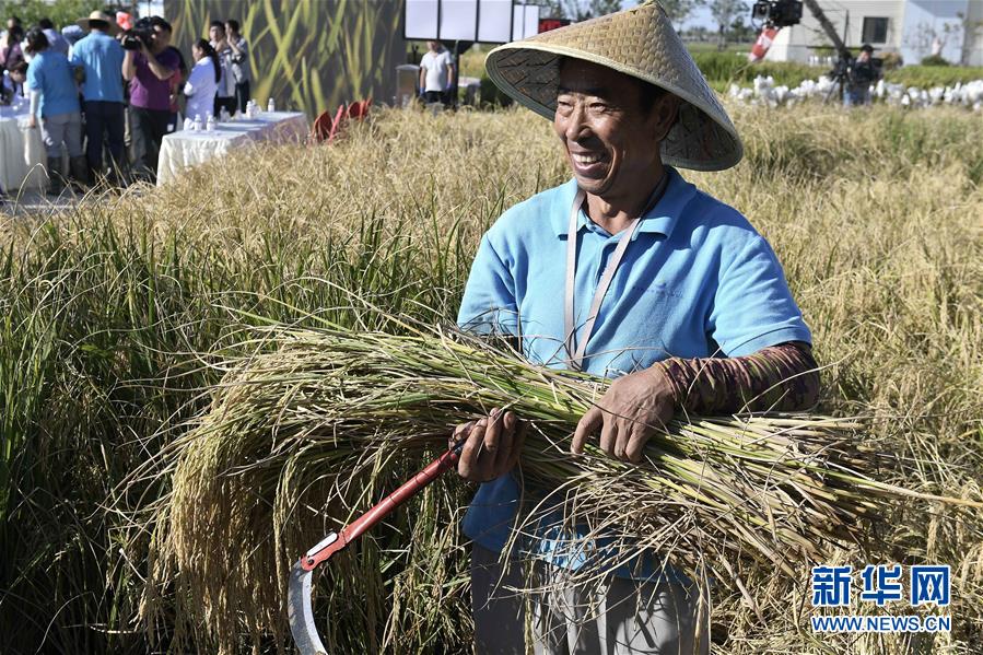 9月28日,由中國工程院院士、“雜交水稻之父”袁隆平領銜的技術團隊培育出的最新一批“海水稻”實地測產,最高畝產達到620.95公斤,我國在“海水稻”研發領域取得了重大突破。(新華社記者 郭緒雷 攝)