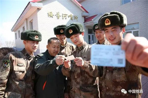 拿到春運車票后,老張趕緊把票送到哨所戰士的手中。(圖片來源:中國鐵路微信公號)