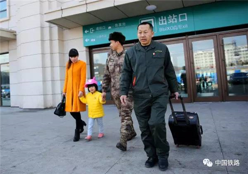 家屬來探親,只要有時間張青葉就會陪同戰士一起去接站。(圖片來源:中國鐵路微信公號)
