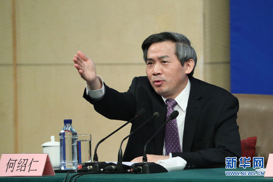 3月10日,十二屆全國人大五次會議新聞中心舉行記者會,邀請中國人民銀行行長周小川、副行長易綱、副行長兼國家外匯管理局局長潘功勝、副行長范一飛就“金融改革與發(fā)展”的相關問題回答中外記者的提問。圖為記者會主持人何紹仁。新華網/中國政府網 孫韜 攝
