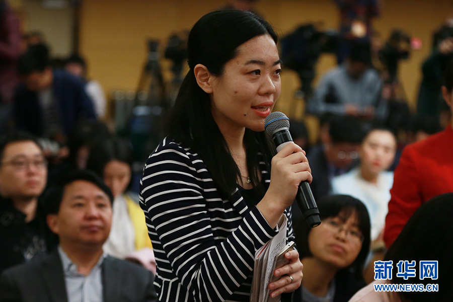 3月11日,十二屆全國人大五次會(huì)議新聞中心舉行記者會(huì),邀請工業(yè)和信息化部部長苗圩、副部長辛國斌和總工程師、新聞發(fā)言人張峰就“推進(jìn)實(shí)施‘中國制造2025’”的相關(guān)問題回答中外記者的提問。圖為香港紫荊雜志記者提問。新華網(wǎng)/中國政府網(wǎng) 傅義洲 攝
