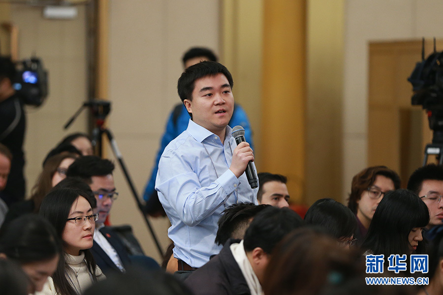 3月11日,十二屆全國(guó)人大五次會(huì)議新聞中心舉行記者會(huì),邀請(qǐng)工業(yè)和信息化部部長(zhǎng)苗圩、副部長(zhǎng)辛國(guó)斌和總工程師、新聞發(fā)言人張峰就“推進(jìn)實(shí)施‘中國(guó)制造2025’”的相關(guān)問題回答中外記者的提問。圖為中國(guó)國(guó)際廣播電臺(tái)記者提問。新華網(wǎng)/中國(guó)政府網(wǎng) 傅義洲 攝