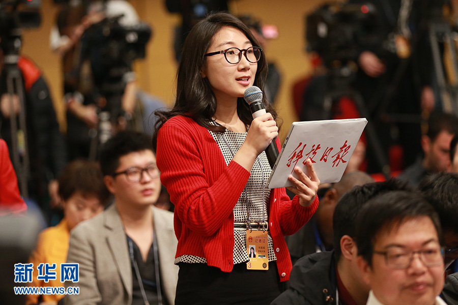 3月11日,十二屆全國人大五次會(huì)議新聞中心舉行記者會(huì),邀請(qǐng)科技部部長萬鋼、秘書長徐建培就“2016年創(chuàng)新驅(qū)動(dòng)發(fā)展戰(zhàn)略實(shí)施進(jìn)展成效和2017年重點(diǎn)工作”的相關(guān)問題回答中外記者的提問。圖為科技日?qǐng)?bào)記者提問。新華網(wǎng)/中國政府網(wǎng) 王健 攝