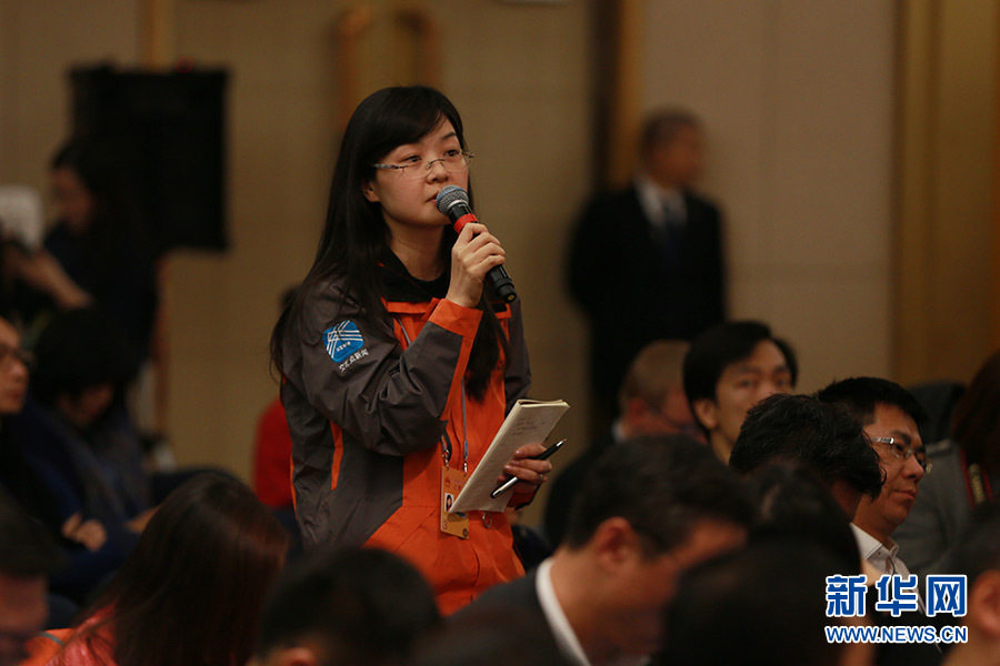 3月14日,十二屆全國人大五次會議新聞中心舉行記者會,邀請國家質檢總局局長支樹平、副局長兼國家認證認可監督管理委員會主任孫大偉、國家標準化管理委員會主任田世宏就“質量提升”的相關問題回答中外記者的提問。圖為揚子晚報記者提問。新華網/中國政府網 傅義洲 攝?