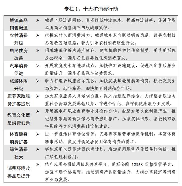 專欄1:十大擴消費行動 新華社發