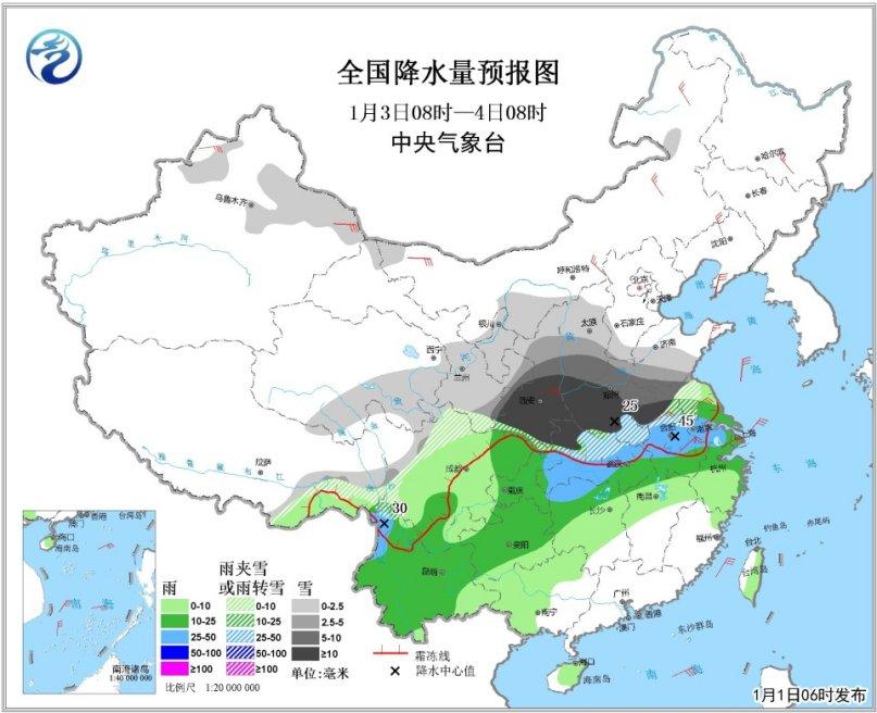中央氣象臺1日清晨發(fā)布天氣公報,今日全國范圍降水較弱,2日至4日中國中東部將出現(xiàn)大范圍雨雪天氣。