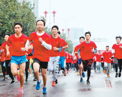 湖南衡陽市民參加元旦環城賽跑。劉愛成攝(新華社發)