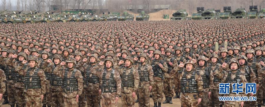 隆冬的華北大地寒意正濃,訓練場上生機勃發(fā)、熱情涌動。開訓動員大會主會場——中部戰(zhàn)區(qū)陸軍某團靶場,7000余名官兵全副武裝、威武列隊,近300臺裝備整齊列陣、氣勢磅礴。校閱臺上懸掛著“中央軍委2018年開訓動員大會”橫幅。“按實戰(zhàn)要求去訓練,按訓練去實戰(zhàn),訓練與實戰(zhàn)達到一體化”“召之即來、來之能戰(zhàn)、戰(zhàn)之必勝”的字樣格外醒目。同時,全軍設4000余個分會場,陸軍、海軍、空軍、火箭軍、戰(zhàn)略支援部隊、武警部隊設野戰(zhàn)化分會場。從林海雪原到天涯海角,從西北大漠到東南沿海,從中原腹地到萬里邊關,三軍將士威嚴佇立、集結待命。這是中央軍委首次統(tǒng)一組織全軍開訓動員,是人民軍隊加強新時代練兵備戰(zhàn)的一次嶄新亮相。
