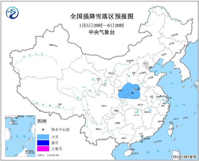 中央氣象臺1月5日18時再次發(fā)布暴雪藍(lán)色預(yù)警。
