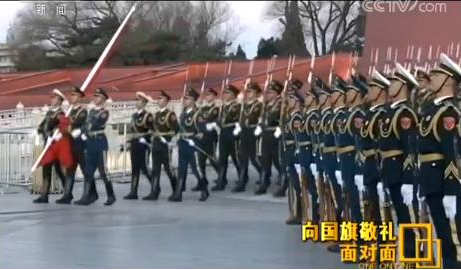 董世偉:向國旗是由我喊,敬禮是由三個分隊長同時喊,因為中間有間隔,所以這個口令很難卡到一塊去,這需要不斷磨合,這十幾天的時間我們粗略統計一下,大概練了得有2000多次。