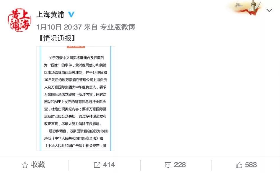 我們已采取措施確保類似錯(cuò)誤不再發(fā)生。萬豪國際集團(tuán)在此重申我們尊重中國主權(quán)和領(lǐng)土完整的一貫立場(chǎng)。