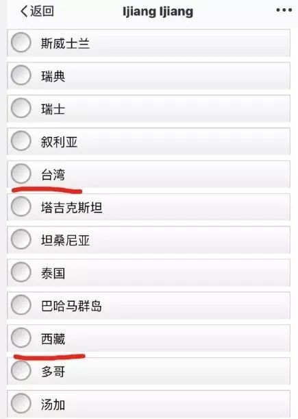當(dāng)他們?cè)诨顒?dòng)的頁面上填寫信息時(shí),選擇“國家”的列表里,竟赫然出現(xiàn)香港、澳門、臺(tái)灣以及西藏的選項(xiàng)。