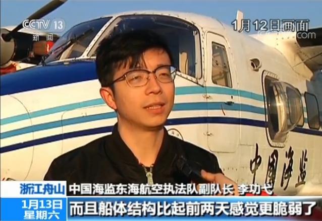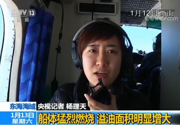 中國海監東海航空執法隊副隊長 李功弋:通過這幾天的航空觀察,感覺這艘船火勢沒有很明顯的變化,船體結構越來越脆弱了,碰撞的缺口越來越大了,可能是11日的爆炸所致。
