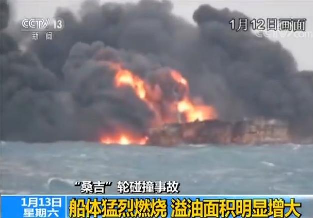 “桑吉”輪船體仍在燃燒 未發生大面積溢油——交通運輸部介紹還原事發場景