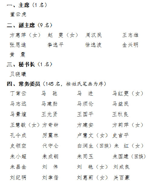 1月27日,市政協舉行全體會議,審議通過選舉辦法,總監(jiān)票人、監(jiān)票人名單,選舉產生十三屆市政協主席董云虎,副主席方惠萍、趙雯、周漢民、王志雄、張恩迪、李逸平、徐逸波、金興明、黃震,秘書長貝曉曦,以及145名常務委員。