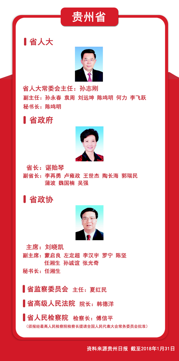 圖文速覽:31省區市新一屆人大政府政協領導班子