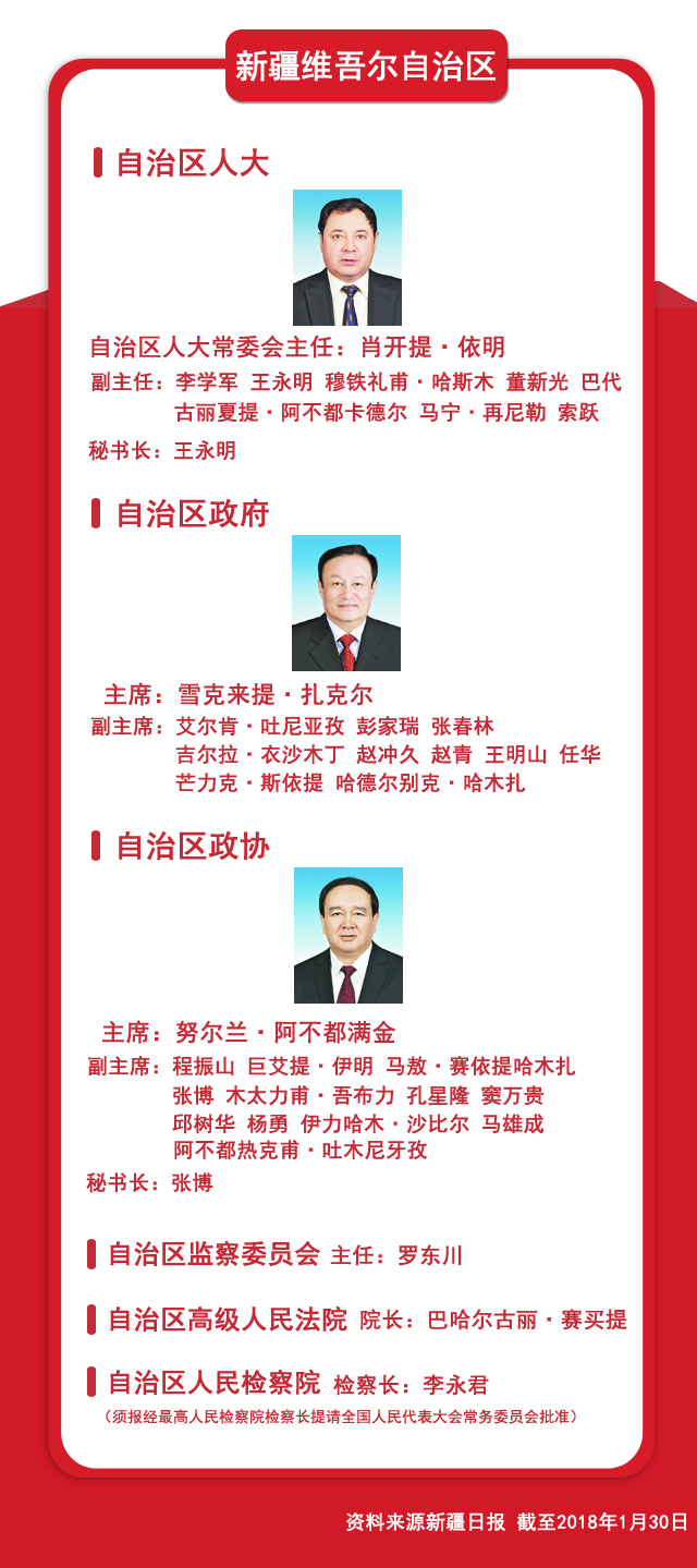 圖文速覽:31省區市新一屆人大政府政協領導班子